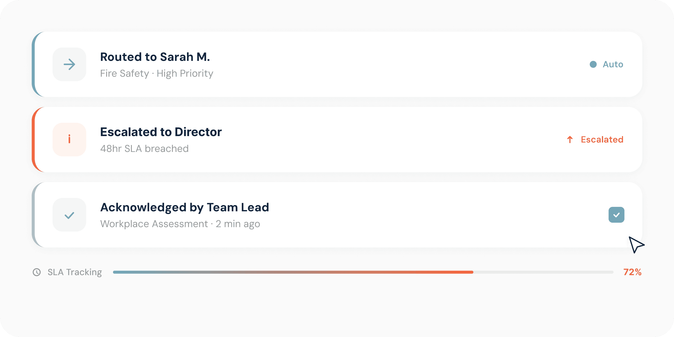 Every incident, update, or task is instantly routed to the right person with the right level of urgency. Escalations trigger automatically, timelines are enforced, and oversight happens in real time.