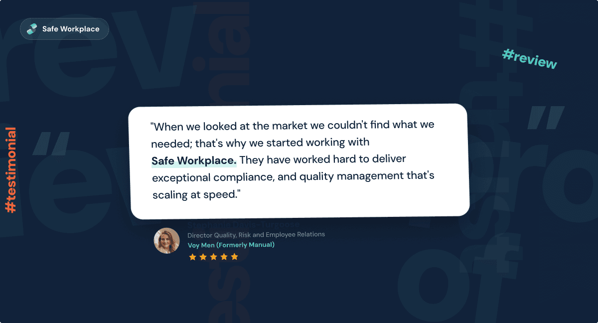 Safe Workplace built its reputation in regulated healthcare, trusted by Voy Men (formerly Manual), PillPack, and so much more, where the cost of poor governance is measured in patient safety, regulatory sanctions, and CQC ratings.