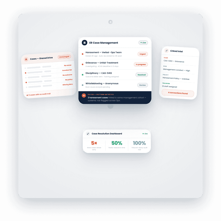 If you're an ER or HR professional in a regulated, compliance-driven organisation, and you need case management that doesn't just log cases but connects them to policy, risk, and learning, so you can evidence fair, consistent outcomes at any moment, Safe Workplace was built for that.