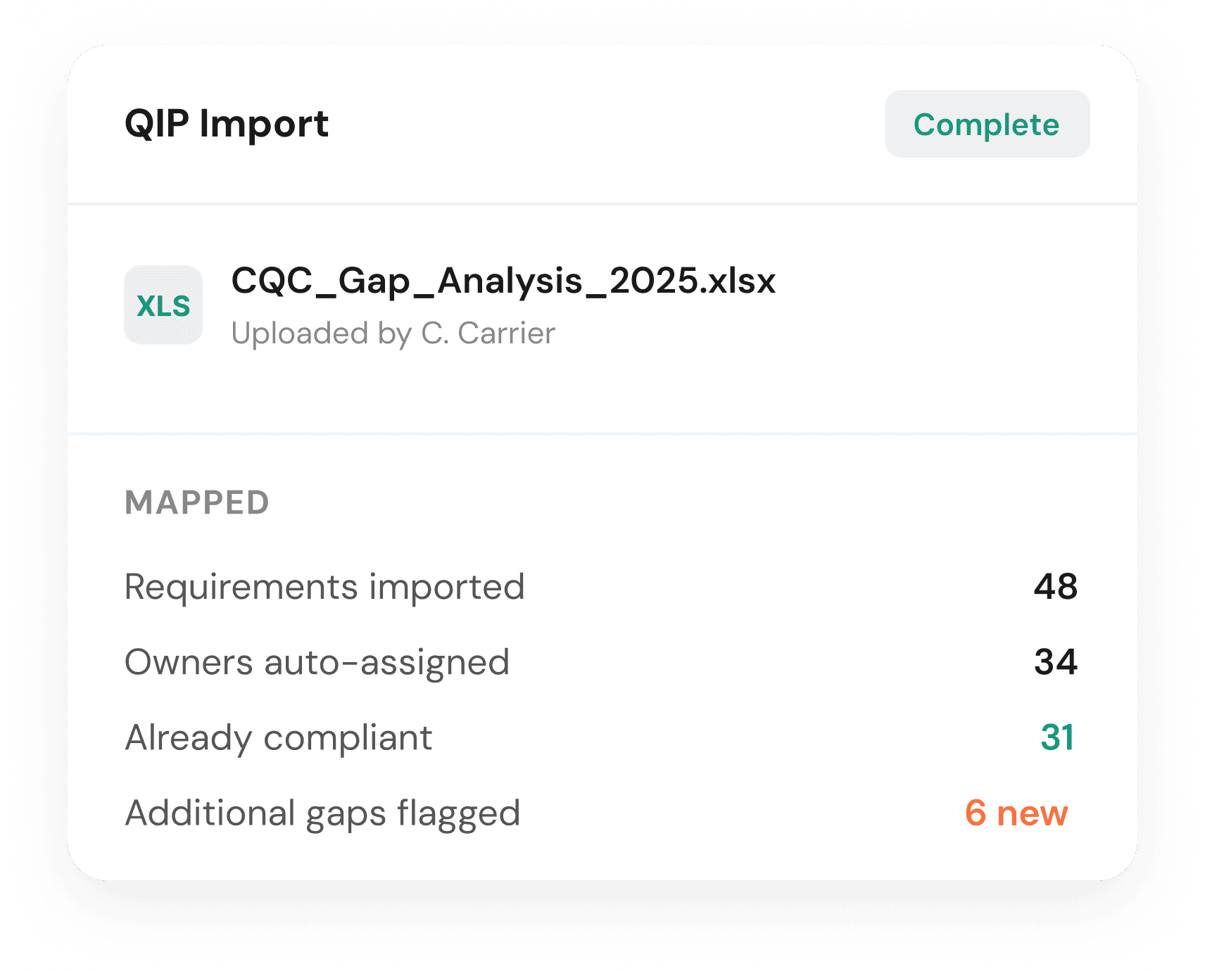 Yes, if you've already done the work, you don't have to start from scratch. Upload your existing gap analysis or QIP as an Excel file and Safe Workplace maps it into the system, auto-assigns owners, and starts tracking progress immediately. It'll also flag anything you may have missed.