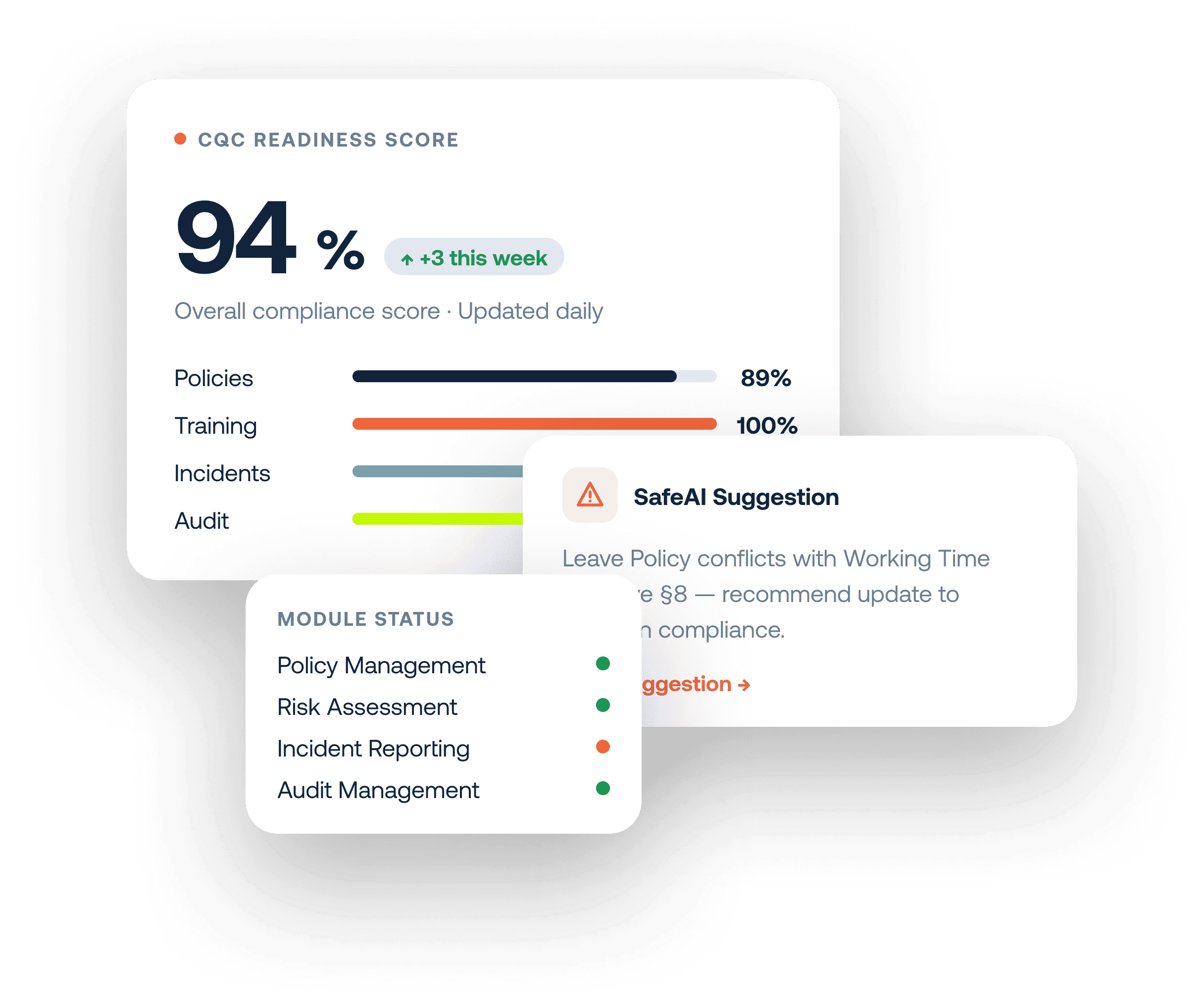 We work with care homes, clinics, and multi-site providers who want something better — a sustainable system that makes inspection readiness part of everyday workflows.
