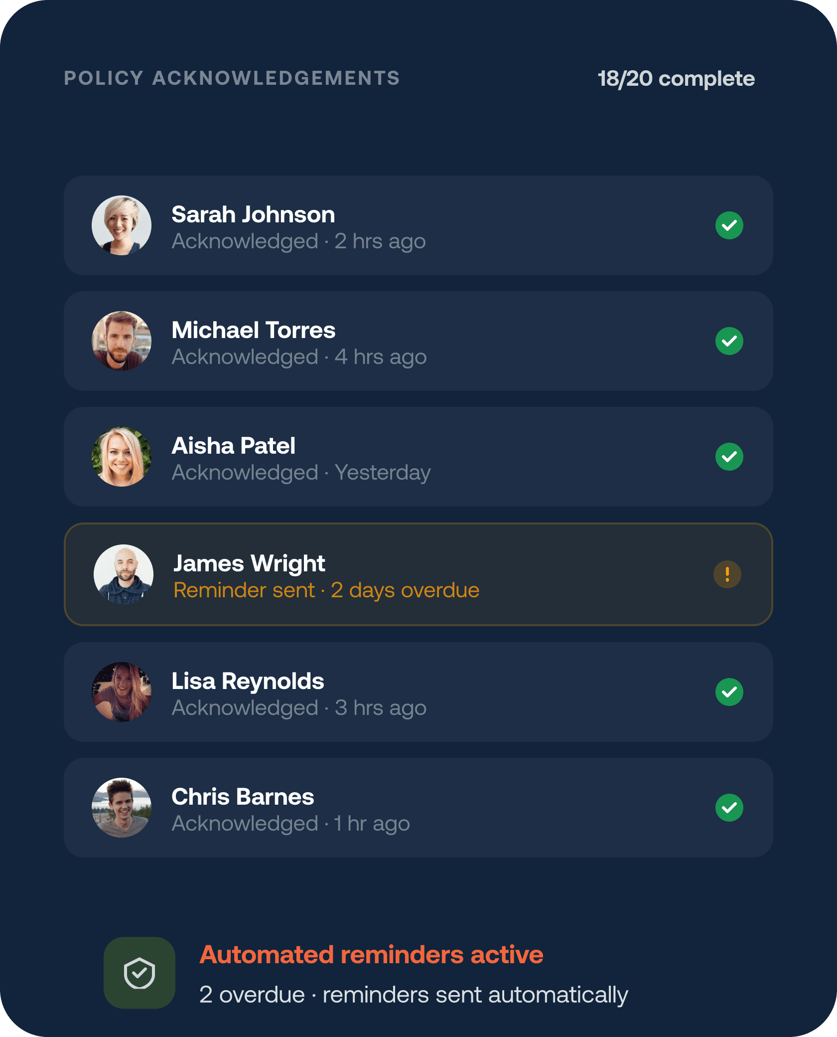 Link policy updates, training, andworkflows into a single source oftruth, with zero paper trails.