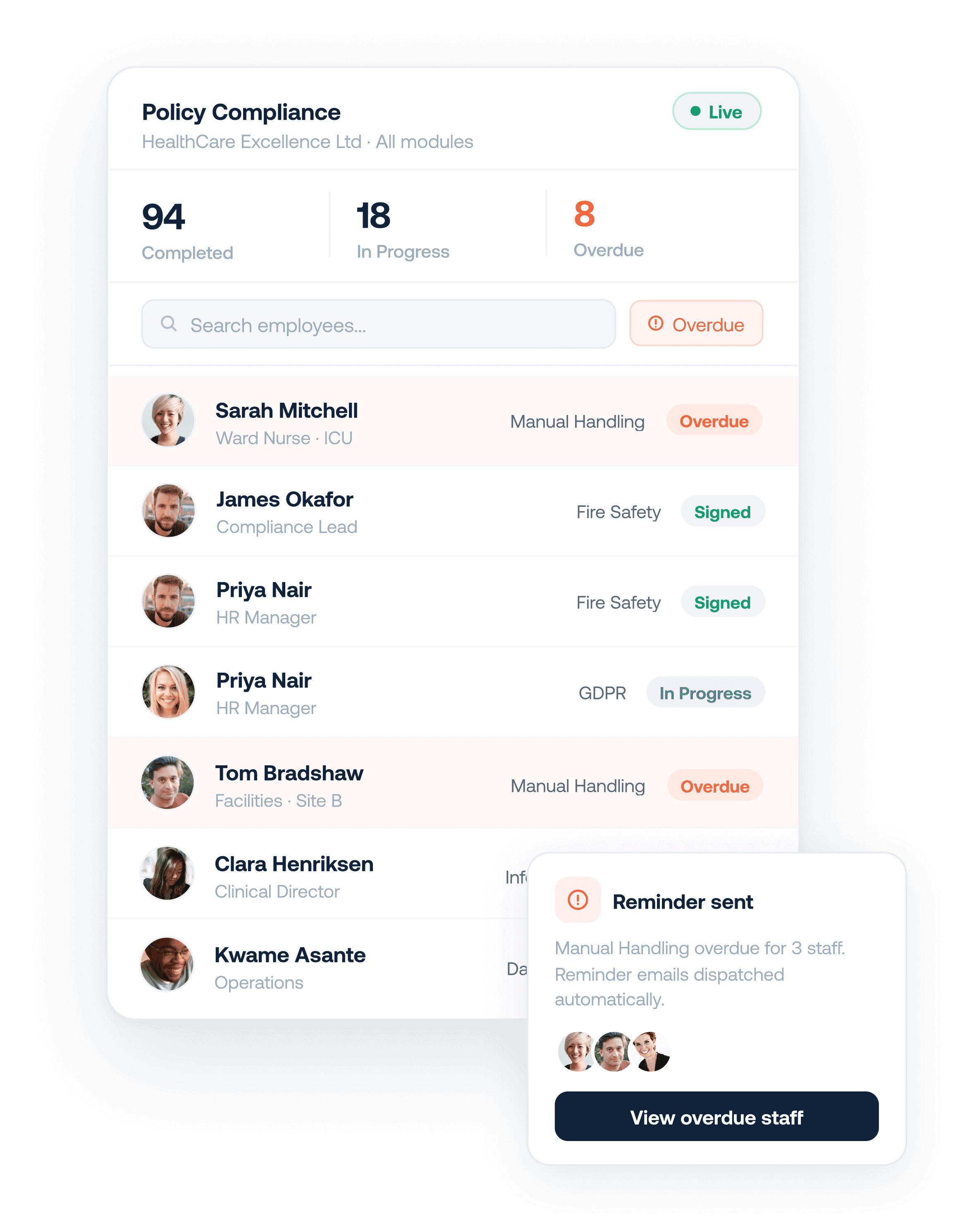 Yes, when a new employee joins, the platform automatically enrols them in the mandatory training for their role. No manual admin required, no gaps in compliance, they're set up from day one.