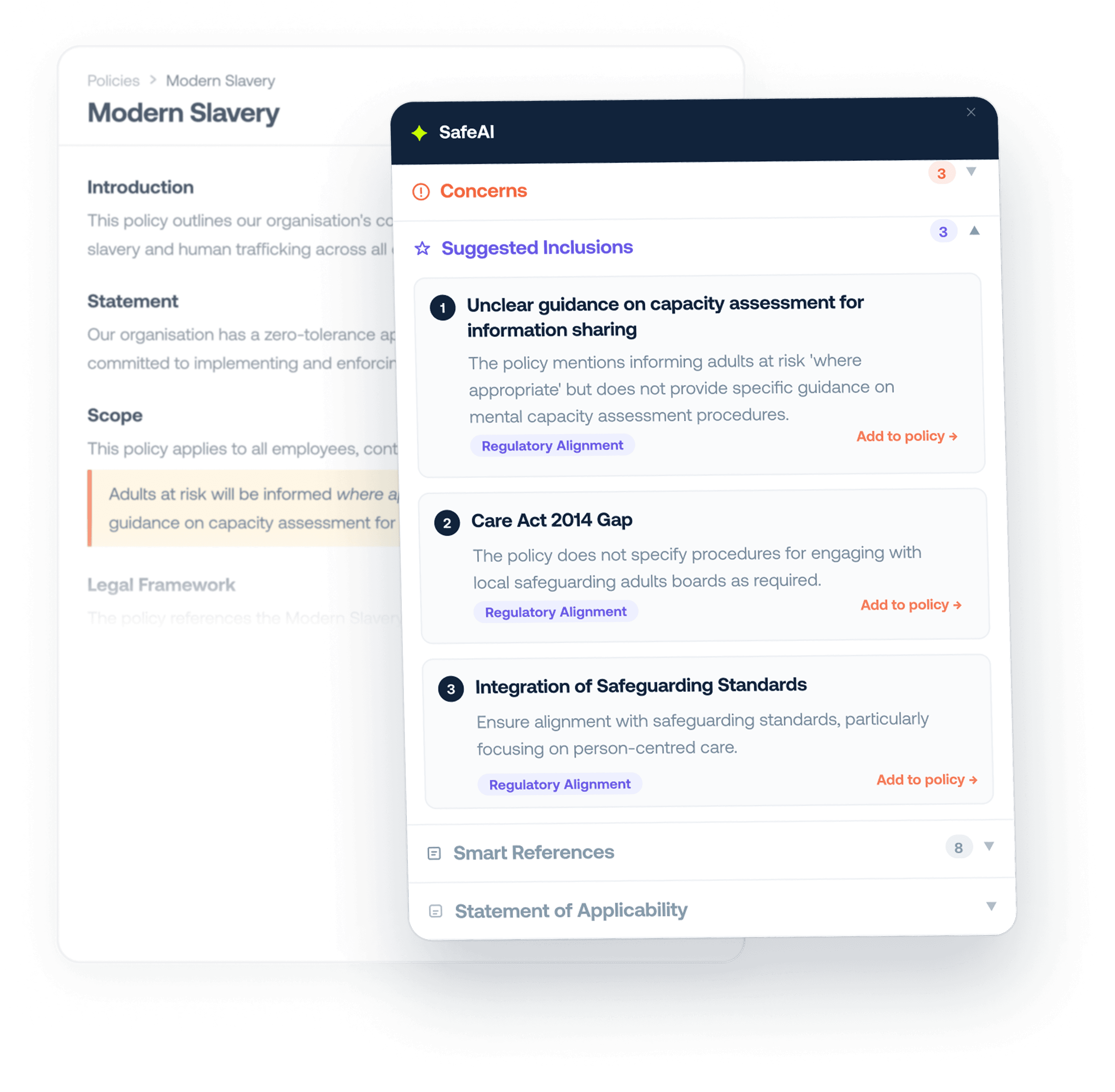 Generate audit-ready reports instantly. Filter by location, risk, or policy type and